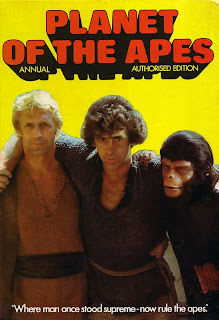 The previous post showed Bolton strip art from the copyright 1977 Planet of the Apes Annual. He is also in the other two Apes annuals. The copyright 1975 Apes annual above reprints American comic strips and uses Bolton spot illustrations, while the copyright 1976 annual uses him for one colour comic strip and Trigan Empire, Dan Dare and War/Battle Picture Library artist Oliver Frey for the other, as seen below.