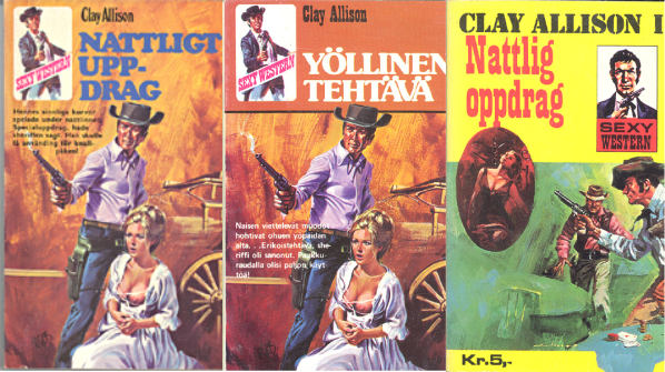 covers for early Clay Allison titles, including those by Kjell Hallbing writing