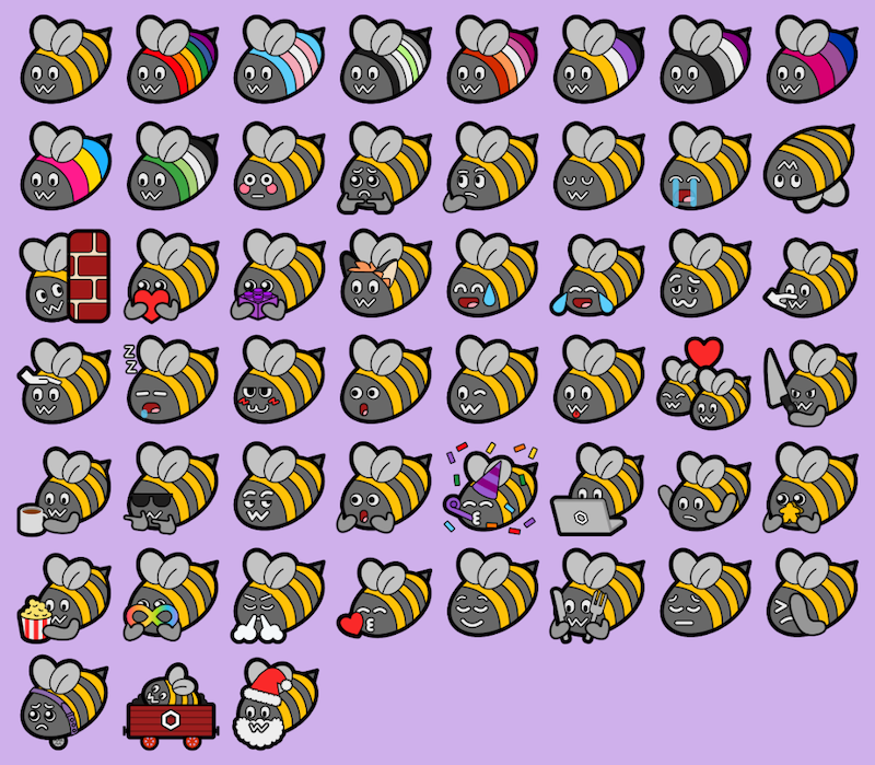 Blobbee is an emoji pack starring bees, based on Neocat and Neofox by Volpeon.
