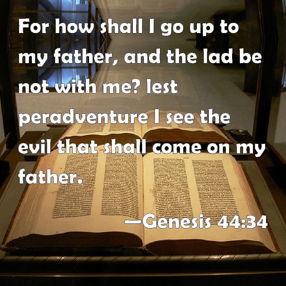 Genesis 44:34 For how shall I go up to my father, and the lad be not with me? lest peradventure I see the evil that shall come on my father.