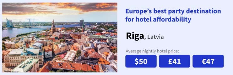 After a big night on the town, it is important to have somewhere to rest your head (and nurse your hangover). Of the European destinations studied, Riga offers the cheapest hotel stay with costs averaging $50 (£41| €47) per night in June.