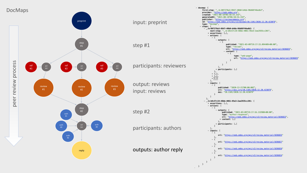 DocMaps are a way to describe the processes used to create documents in a structured manner. The framework is sufficiently flexible to capture a variety of contextual data about a document — from a minimum assertion that a process took place to a detailed history of every edit to the document. This pilot focuses on a specific use case, but the ultimate goal is to take advantage of DocMaps’ extensibility to cover a variety of use cases across different documents generated in scholarly publishing (and beyond). The pilot builds on the work of the DocMaps Technical Committee, a group of leading publishers, technology and infrastructure developers, review services, taxonomy definers, and open science advocates convened in the summer and fall of 2020 by Knowledge Futures, ASAPBio, and TU Graz’s Open and Reproducible Research Group.