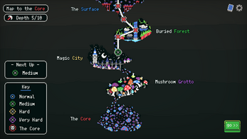 - Roguelike deckbuilding: Delve into the mines, play cards to mine resources, and escape with your life - then use those resources to buy new cards, upgrade your deck, and power up!