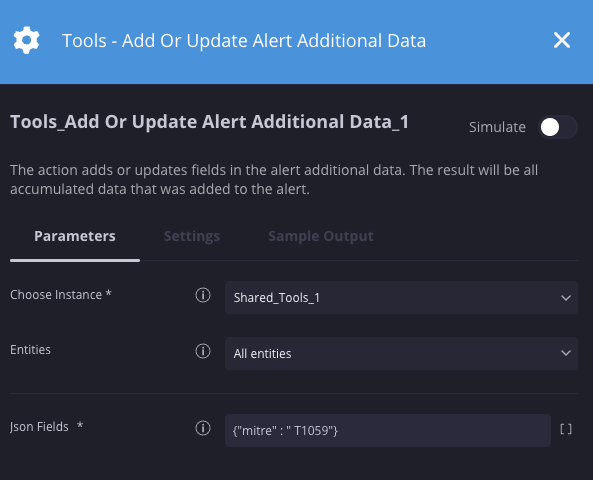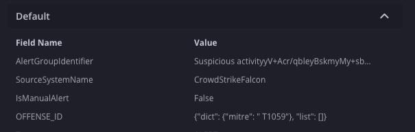 Adds or updates fields in the alert additional data. Results will be shown in a field called “OFFENSE_ID” in the Alerts overview.