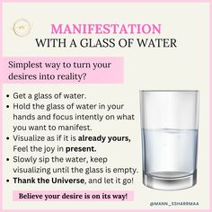 As you hold this glass of water, remember that it symbolizes the clarity and purity of your intentions. *Step 1: SET YOUR INTENTION*