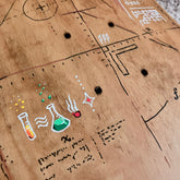 Board art with battered monster-themed designs or coverings. The first of the series...