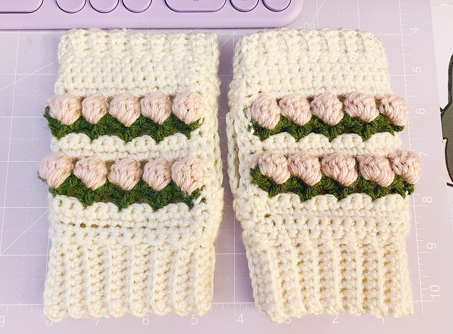 A fellow vendor at the fair bought a pair of flower-inspired mitts and they looked incredibly cute on her. She wore them the entire afternoon!!