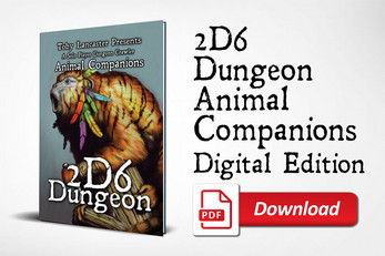 You can have one animal companion in 2D6 Dungeon, one creature you have formed a powerful bond with. It will follow and fight beside you or perform tasks and remain loyal to the end.