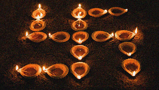 lamps and families would come out to light flowerpots, bhoomi chakras, vishnu