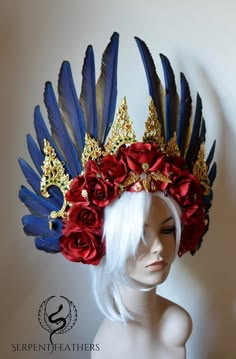 Crimson Rose Halo Headpiece With Rhinestone Spikes & Chains - Panmilli | Goddess Headpiece | Halloween | Floral Headband | Celestial Bride - Etsy Canada Red Head Pieces, Headdress Design, Headpiece Flowers, Headpiece Flower, Head Gear Fashion, Dramatic Headpiece, Head Gear, Dramatic Hats, Red Halo