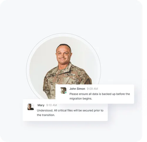 Skalieren Sie sicher und dynamisch mit einer unbegrenzten Anzahl von internen und externen Benutzern, Teams, Kanälen und Anwendungen, um klassifizierte Vorgänge und umfangreiche Koordination zu unterstützen.