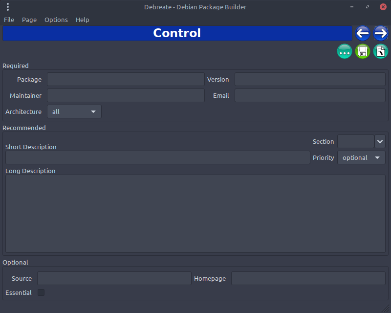 .deb packages contain the file DEBIAN/control. This file contains meta information about the package. Such as the package name, package version, author, & requirements. This page is the first half of filling out the control file information.