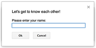แสดงข้อความ ช่องป้อนข้อความ และปุ่ม "ตกลง" ส่วนชื่อและ