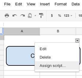 همچنین میتوانید یک تابع Apps Script را به یک تصویر یا نقاشی در Sheets اختصاص دهید، مشروط بر اینکه اسکریپت به صفحه گسترده متصل باشد. مثال زیر نحوه تنظیم این مورد را نشان میدهد.