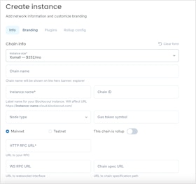 - Mainnet or Testnet: Select the type of chain, if Testnet a label will be added to the instance.