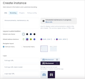 - Instance name*: A label for your instance, it is reflected in the url of the instance ie https://instance-name.cloud.blockscout.com/