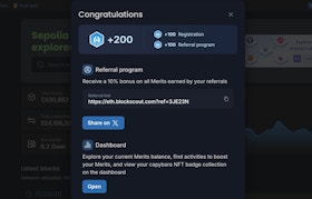 0xaddress) via the Blockscout dashboard and your web3 wallet. - Merits can be earned on any chain where the program is supported, and Merits accumulate to an account across blockchains and rollups.