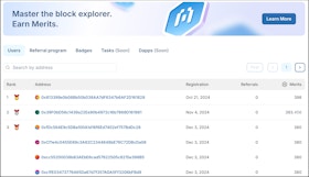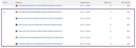 - Ranking is determined by the number of Merits earned. If addresses share the same number of Merits, they all share the same rank. In this example, all accounts have 352 Merits, and are all ranked 12.