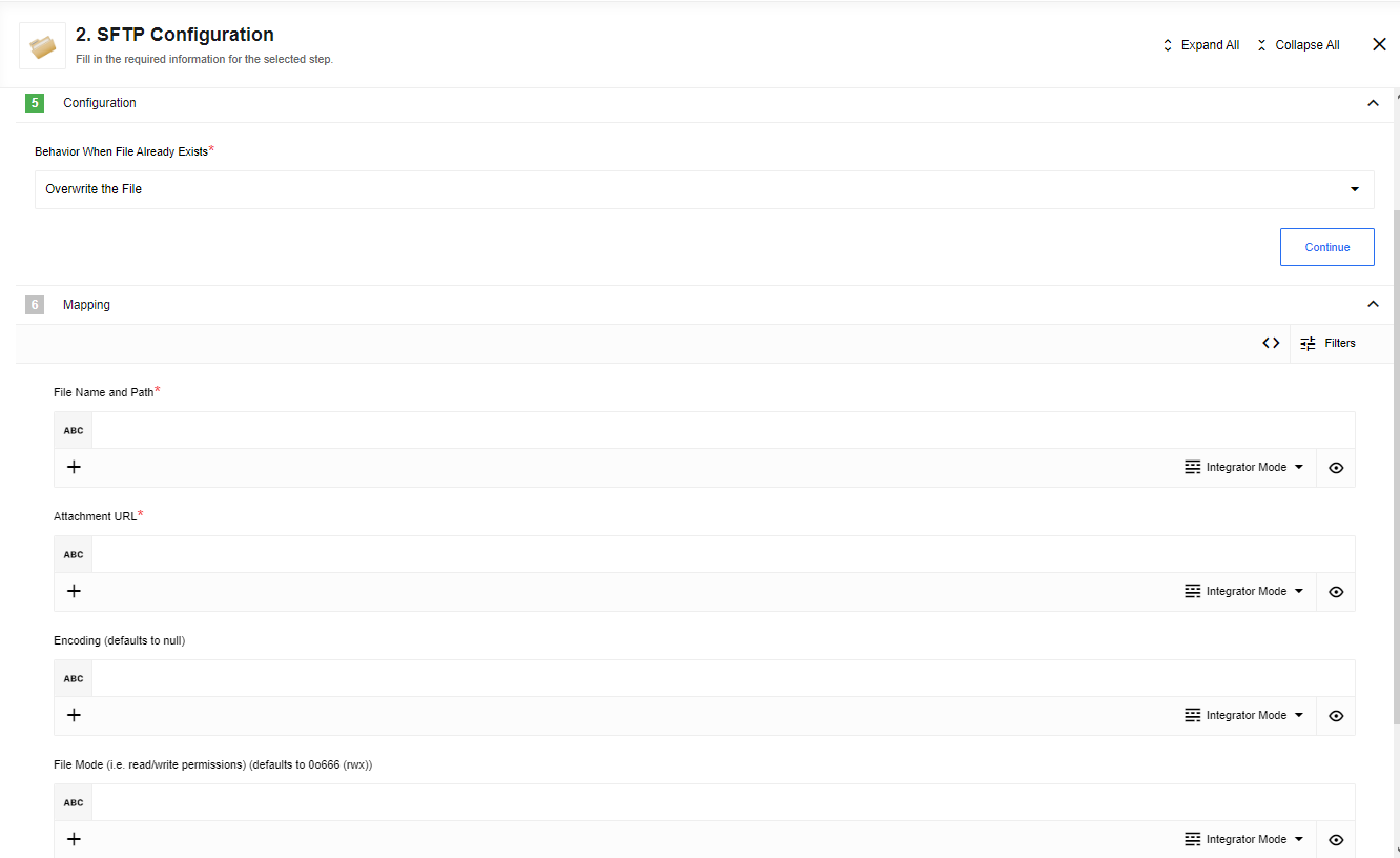 - Behavior When File Already Exists - (dropdown, required): The expected behavior of the component when trying to write to a file that already exists: