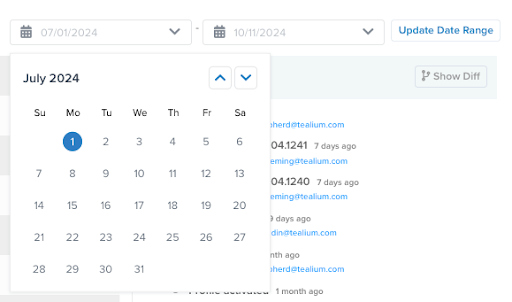 すべてのリビジョンリストは、最近のすべてのリビジョンを表示します。リストを変更するには、開始日と終了日のフィールドで日付範囲を選択し、日付範囲を更新をクリックします。