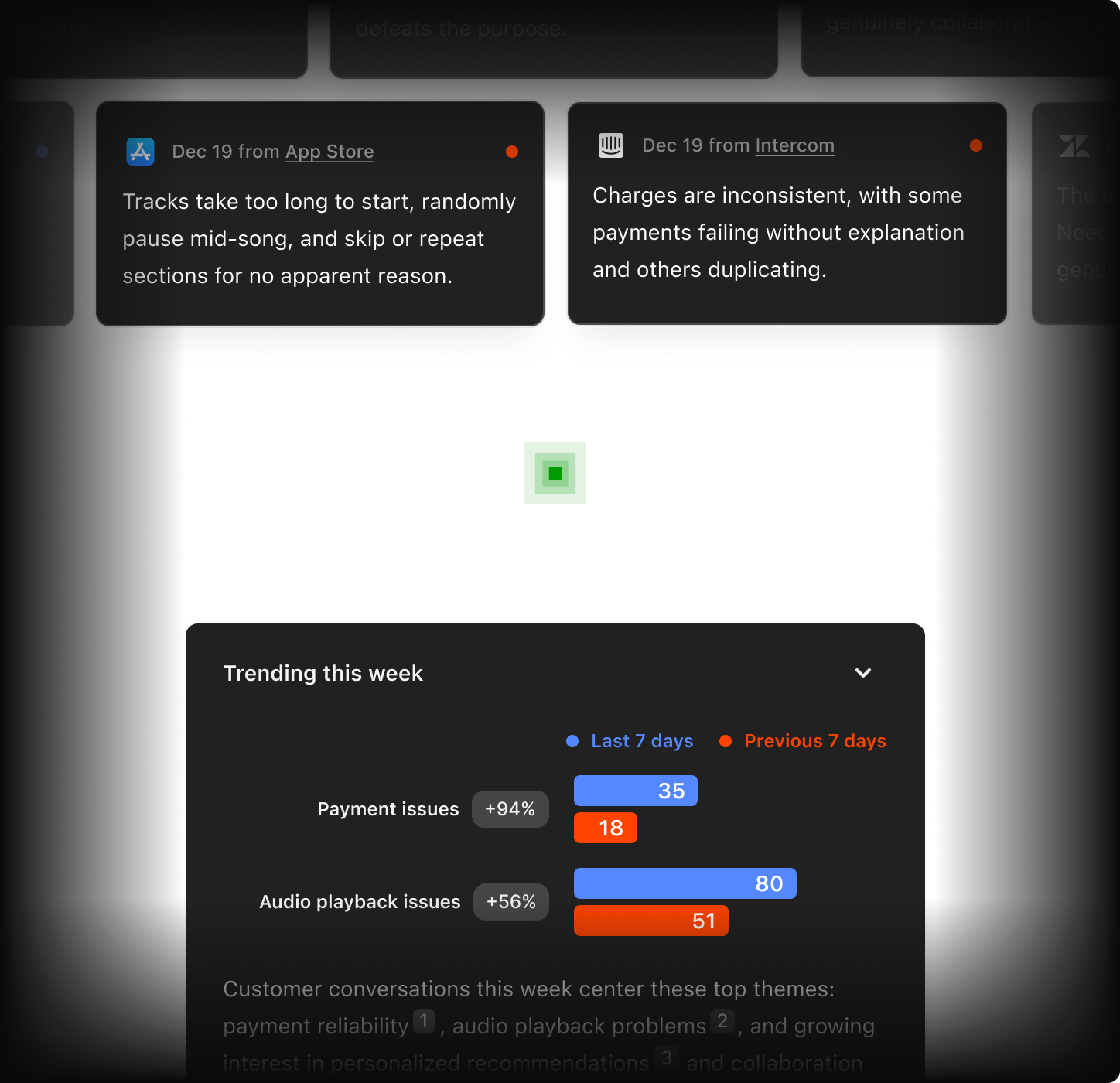 Turn your data into direction. Convert themes into roadmap opportunities, whether your tracking long-term trends or diving deep into investigations.