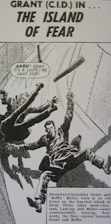 Grant's first black and white story was called The Island of Fear, as from now on each serial would have its own title. Our heroes investigate a mysterious island off the coast near Belminster, following the discovery of a plea for help in a bottle washed up on the beach. On the island they meet two frightened men in an old house and are regaled by eerie music and ghostly figures, before the two men are trapped in a giant spider's web. It eventually transpires that the two men are embezzlers who have cheated a film maker out of his fortune. The 'monsters' are actually mechanical film props and special effects, used to scare the two men into confessing where they have hidden the money and GRant and Bailey were lured to the island to witness their confession. This story ran for fifteen episodes and was well paced and intriguing, even though the end reveals that Grant and Bailey were never in any real danger. The basic premise was not original, with John Brody, Maxwell Hawke and Rory Macduff all having visited islands in similar circumstances. Before them, several horror films used the idea of luring villains into remote houses to take retribution for their crimes or to scare them into admissions of guilt. Good examples are The House on Haunted Hill and the Bob Hope comedy The Cat and the Canary.