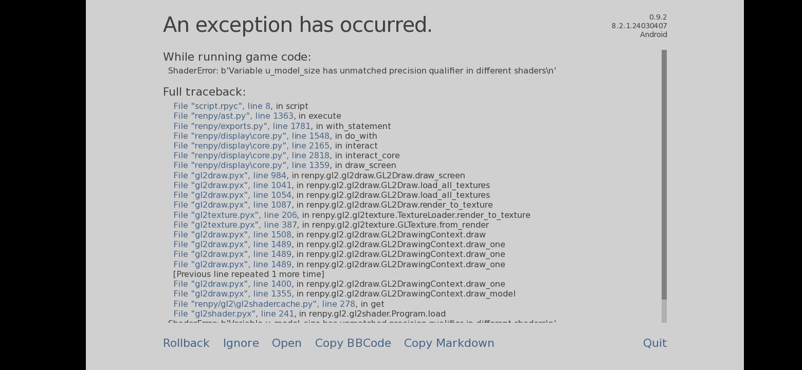 Oh weird :0 I guess there's an issue with the shaders-- My fault for trying to be fancy with it-- I'll change it for the android version! (That's what you were using, right?)