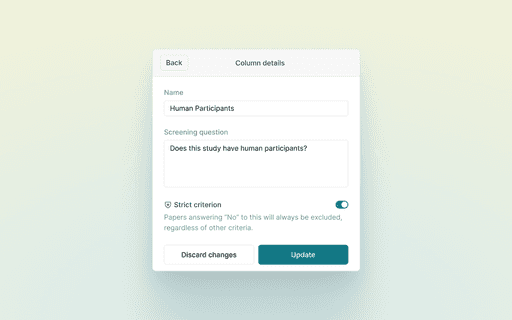 Unlike with other AI tools, Elicit Reports can be deeply customized. You can change which papers and what information is covered in the reports.