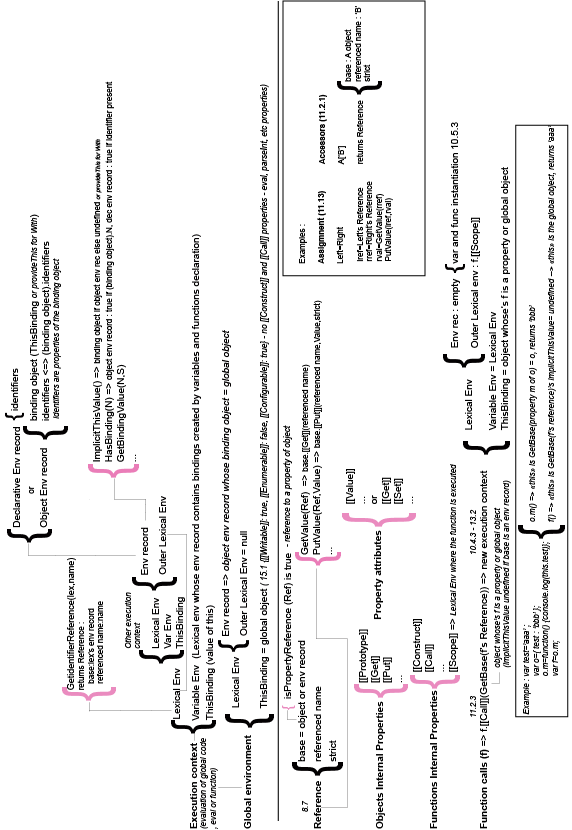 To view annotations, follow the Ⓐ, Ⓑ, Ⓓ, Ⓡ, Ⓖ, Ⓔ, and ① hyperlinks in the headings. A key to the markers explains the different types of annotations. Also included are a variety of hyperlinked cross-references, following the example of Jason Orendorff’s version at http://people.mozilla.org/~jorendorff/es5.html