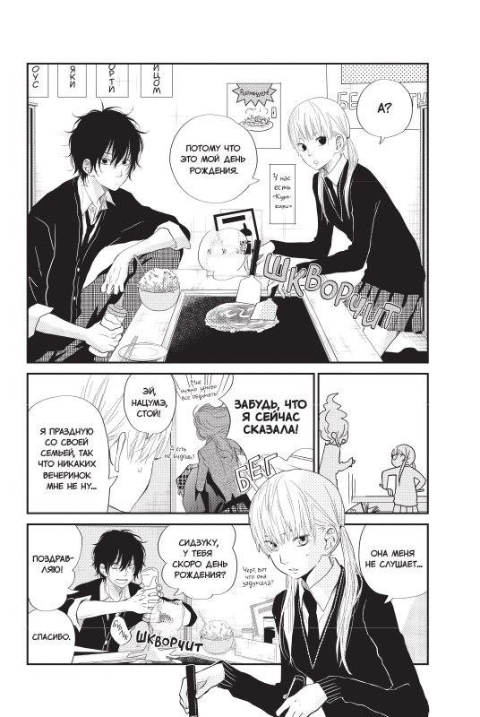 После совместной поездки в горы Хару и Сидзуку, кажется, наконец начинают лучше понимать друг друга и готовы идти на уступки. Но близятся две очень важных даты, которые могут как поспособствовать сближению наших героев, так и преподнести неприятные сюрпризы: день рождения Сидзуку и день святого Валентина!