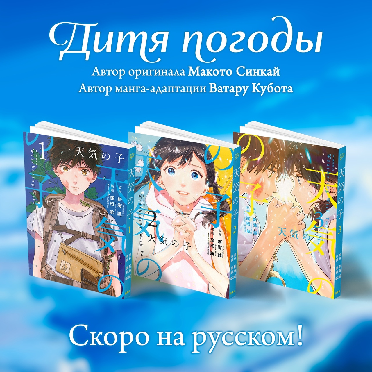 цитатаМы любим творчество Макото Синкая так же, как и вы, поэтому страшно рады объявить, что издадим великолепную манга-адаптацию его свежей и освежающей как летний дождь работы «Дитя погоды» от Ватару Куботы!Манга-адаптации работ Макото Синкая всегда отличались отменным качеством рисунка, и эта исключением не стала: Ватару Кубота, будучи новичком в мире манги, при переносе истории из фильма на чёрно-белые фреймы сумел мастерски выжать из оригинала максимум, не забыв дополнить мысли и переживания героев для ещё более полного понимания заложенных Макото-сэнсэем идей.