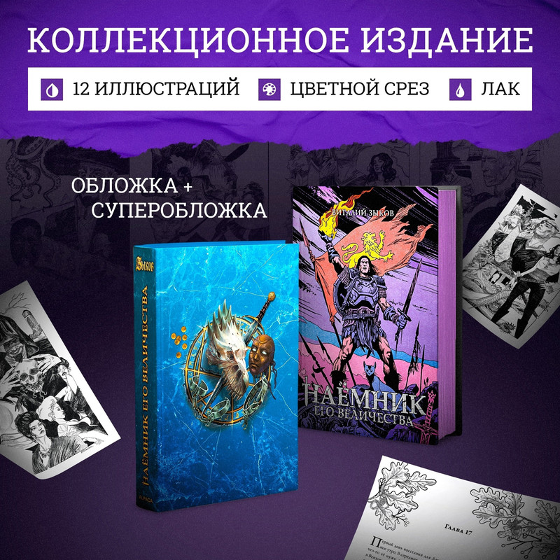 «Наёмник Его Величества. Коллекционное издание»: предзаказ открыт! Ссылка на предзаказ "Ветры перемен продолжают набирать силу над многострадальным Торном. Легендарные артефакты всплывают из небытия, правители становятся игрушками в руках тайных обществ, а сильные мира сего в очередной раз оказываются на пороге новой Великой войны… Последней войны в этом мире! И вновь звенят клинки, сотрясают земли Торна битвы чародеев, а в ночи беззвучно скользят тени наёмных убийц. Борьба за жизнь, свободу и счастье продолжается!" Второй том знаменитой серии Виталия Зыкова под названием «Дорога домой». Первая книга цикла, «Безымянный раб», была удостоена престижной премии «Меч без имени», а суммарный тираж всех бумажных копий серии превышает 300 000 экземпляров. 624 страницы, твердый переплет, 163х228 мм. Сниженная цена по предзаказу! Коллекционное издание включает в себя: суперобложку Алексея Горбута, основную обложку Дениса Корнева, 12 черно-белых иллюстраций Кирилла Романовского, стильное оформление, качественную бумагу и украшение лаком. Также на выбор есть издание с цветным срезом и без него. Работа над книгой приближается к завершению и скоро она отправится в печать. Выход состоится этой весной.