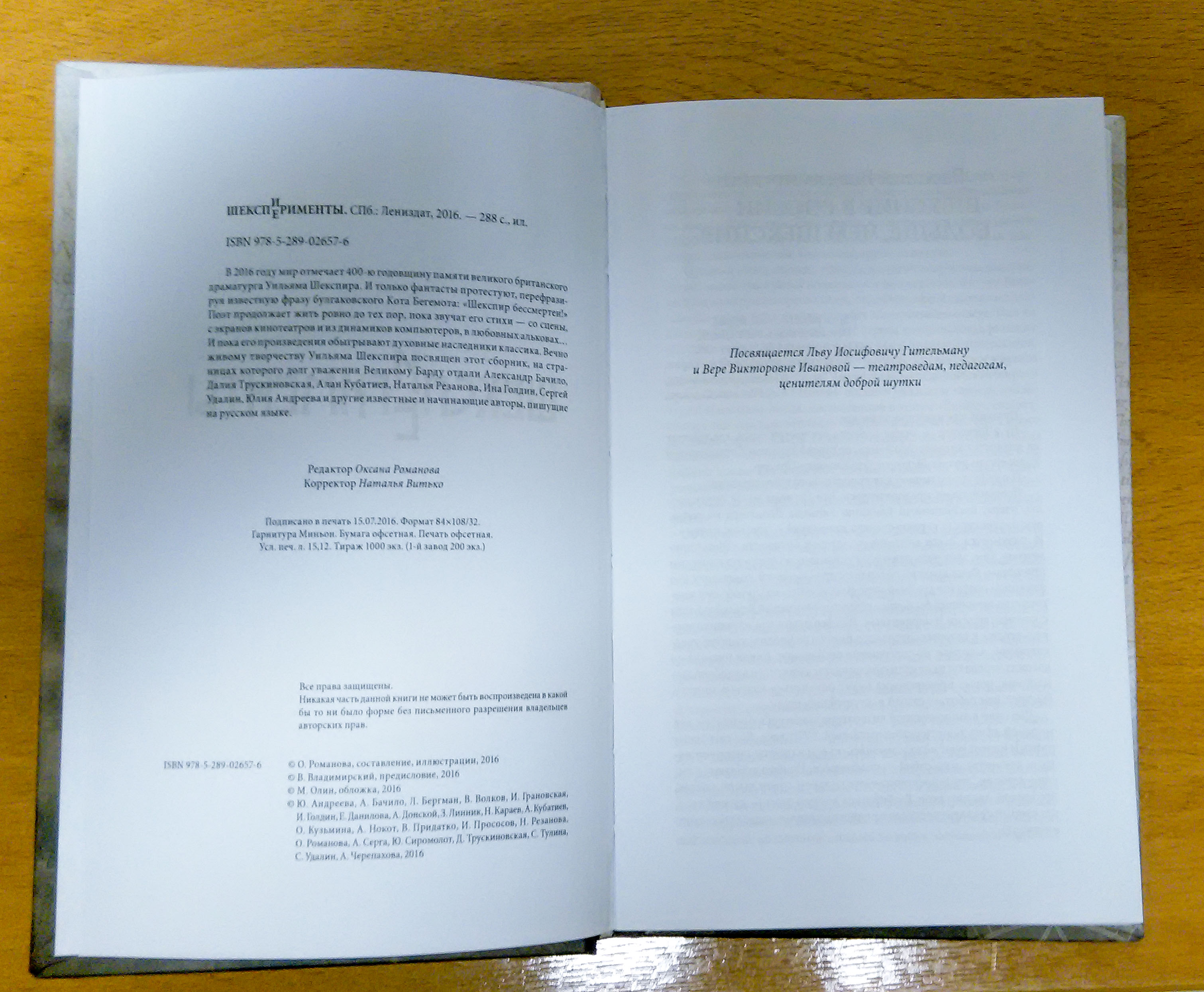 Шекспир в России — больше, чем Шекспир. Это и Михаил Кузмин, и Самуил Маршак, и Владимир Набоков, и Давид Самойлов, и Борис Пастернак, и Владимир Высоцкий, и Иннокентий Смоктуновский, и Олег Даль... И сотни других: каждый со своим голосом, своим стилем, своей интерпретацией образов. Лицо скрывается под маской — или маска заменяет лицо? Логично предположить, что самый прямой путь к осмыслению творчества Великого Барда, к рефлексии и присвоению опыта его героев в нашей стране лежит именно через постмодернистское обыгрывание. В ироничном ключе или трагическом — это уже детали. Сборник «Шекспирименты» — еще один шаг в этом направлении. Насколько твердый и уверенный — судить вам, дорогие друзья.