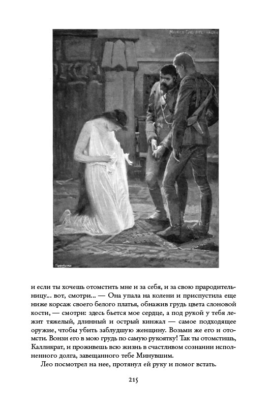 Роман "Возвращение Айши" иллюстрировался всего один раз, Морисом Грайфенхагеном для журнала Windsor Magazine (1904-1905 годы). Журнальный комплект огромен: 52 иллюстрации! В первом английском книжном издании 1905 года, например, от этого комплекта осталось только 32 иллюстрации. А в первом американском издании (оно вышло в Канаде в том же году) — всего 8 иллюстраций! И все последующие издания этими восемью иллюстрациями и ограничивались. Мне же удалось приобрести конволюты оригинальной журнальной публикации — и мы в нашем издании предлагаем вам полный комплект из 52 иллюстраций Мориса Грайфенхагена:
