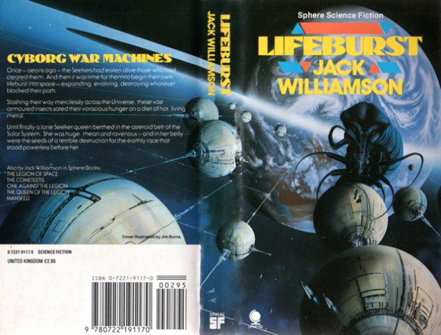 Иллюстрация с обложки "Числа Зверя" впервые появилась на обложке романа американского фантаста Джека Уильямсона Lifeburst. Роман был написан в 1984 году, а издан впервые в Британии Sphere Books в 1987 году — с обложкой Джима Бёрнса. Вот она, та иллюстрация, на книжной обложке и в двух форматах оригинальным полотном (картинки кликабельные).