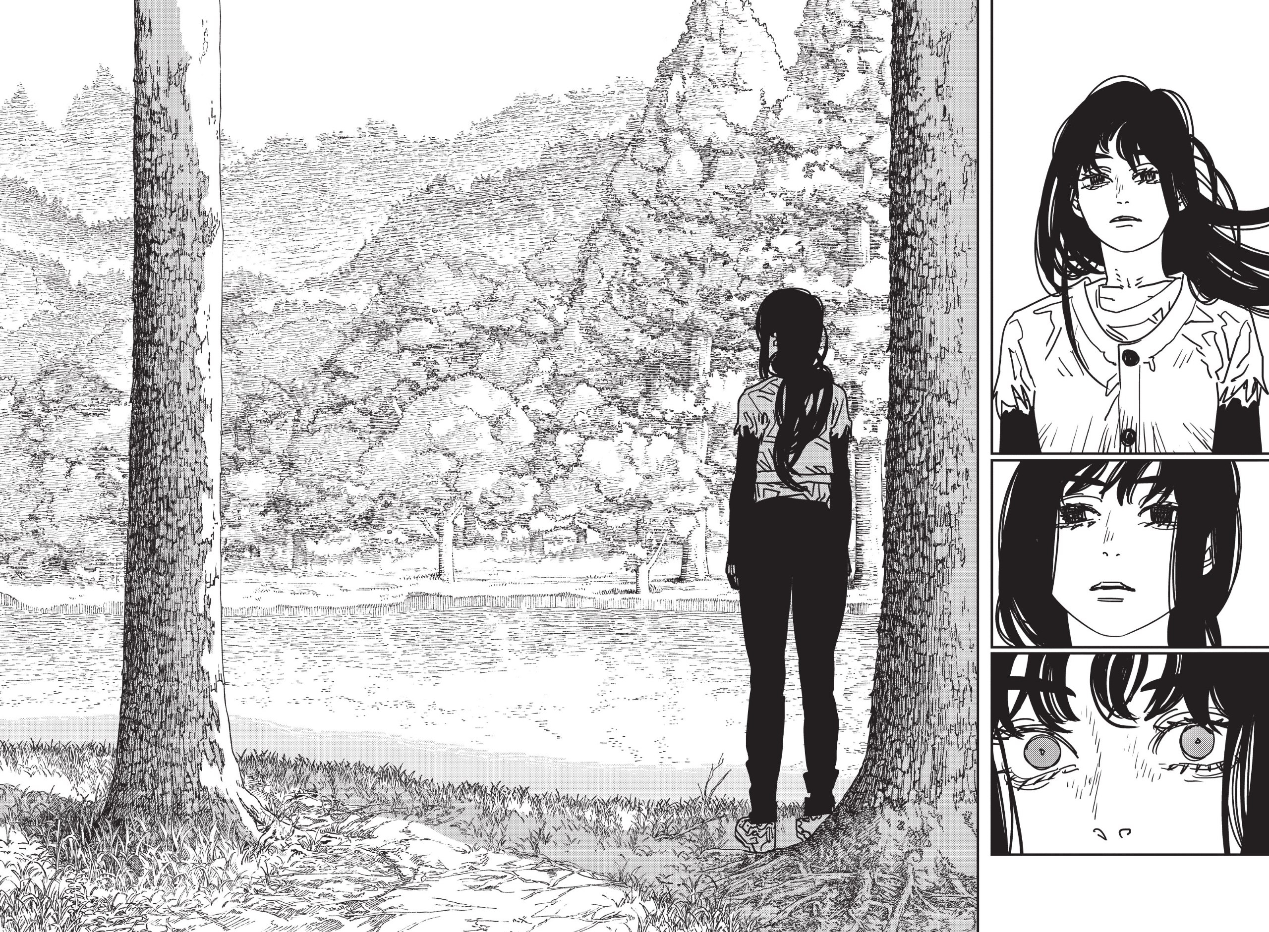 Узнав о судьбе Наюты, Дэндзи теряет самообладание и превращается в чёрного Человека-Бензопилу — могущественное и неистовое чудовище. В бой с ним вступают как сотрудники Бюро общественной безопасности, так и Йор, но их усилия тщетны: в этом обличии юноша невероятно силён. Кроме того, в ходе ожесточенной схватки появляется демон-старение – воплощение первородного страха человечества. И у этого существа имеются свои планы на Дэндзи...