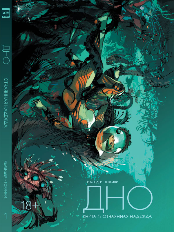 Вторая глобальная проблема комикса и по совместительству достаточно общая черта многих серий Image, что они как сериалы Netflix. Слишком авторские и без адекватного контроля, поэтому там может твориться всё что угодно. Никто не похлопает по плечу и не скажет «так нельзя». Поэтому у них всегда крайне красивое и увлекательное начало, которое потом зачастую скатывается по всем параметрам. Например, первые 8 выпусков «Дна» художник Грег Токкини старательно красил в собственной манере, и это было круто. К девятому, похоже, он понял, что ничего не успевает, и к команде присоединился колорист. Качество рисунка резко просело. А к концу серии и сам Токкини начал халтурить, поэтому местами рисунок то сверкает большими белыми полями, то превращается в жуткое месиво. С сюжетом та же беда. Любопытная идея о далёком будущем, где люди спасаются от увеличившегося солнца в куполах на дне океана без какой-то надежды на спасение, очень быстро без объяснений начинает пестреть всевозможными клише жанра, новыми фантастическими существами, бросающими вызов логике, и несуразными сюжетными поворотами на ровном месте. Мои любимчики, собравшие самое идиотское бинго — жители купола Волдин. Они даже под водой ходят в меховых шапках и шубах, используют кибернетические летающие боевые машины в виде медведей, почтительно именуют своего лидера Царь и калёным железом выжигают любые признаки культуры, дающие «ложную» надежду. Очаровашки, одним словом.