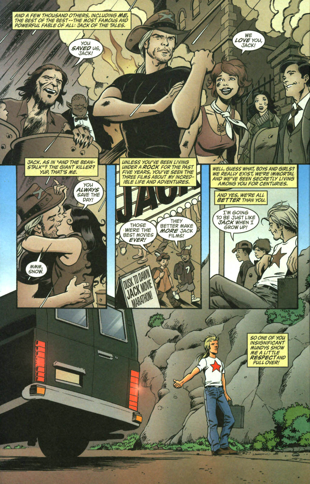События разворачиваются после того, как Джека выгнали из Фэйблтауна. (Они думают, что мне сильно хотелось остаться. Ха!) Как может происходить только с ним, он сразу же вляпывается в приключения. В частности, его хватают какие-то загадочные личности, желающие отловить всех фэйблов. Если вы думаете, что я тут написал большой спойлер — расслабьтесь. Это все происходит на первых десяти страницах, первого выпуска. (В любом случае, это все чушь. Никто меня не хватал — я отправился с ними, только потому, что мне понравилась та цыпочка) То что происходит дальше — это уже просто массовое использование всех безумных идей, пришедших авторам в голову, но не вписывающихся в основную серию.