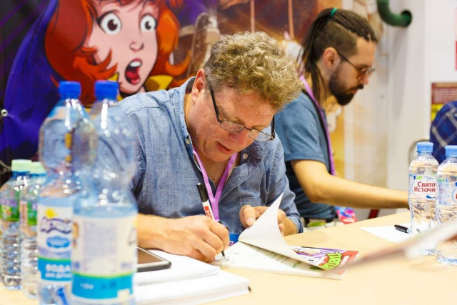 Дубаков добавил, что томское издательство дважды приглашало в РоссиюКриса Алана – художника, рисовавшего оригинальные выпуски черепашек-ниндзя. С ним удалось договориться, чтобы он создал обложки для русской версии этой серии."Когда он прилетел, самым важным вопросом было: "Что произошло с "Вечной войной"? Крис Алан поделился двумя неопубликованными выпусками из пяти, и мы договорились неофициально дорисовать историю до конца и закрыть гештальт. Поэтому мы ее даем бонусом к комплекту из пяти последних книг, которые впервые выйдут на русском языке", – объяснил Дубаков.