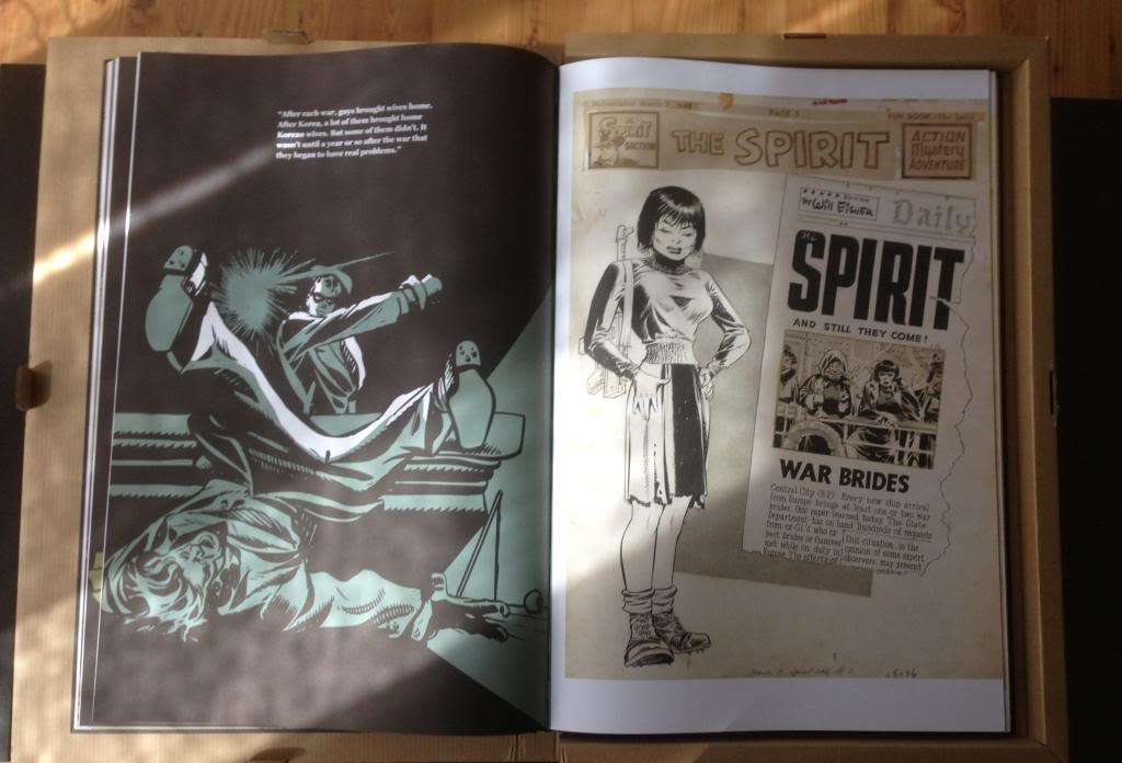 Как я уже сказал выше, проблем с переизданием комиксов было немного меньше, чем с переизданием стрипов, поэтому через какое-то время просто переиздавать стало недостаточно, т.к. все основное уже было издано, и соответственно надо было делать что-то особенное. Я не могу сказать со 100%-й уверенностью, что именно так и думали энтузиасты в IDW запуская серию Artist's Edition, но мне это кажется логичным. Так или иначе, серия Artist's Edition представляет собой репродукции оригинального арта выборочных работ известных художников комиксов. То есть без привычной обводки тушью и покраски. При этом все заметки на полях и прочее остаются. И все это выполнено в масштабе 1 к 1 c оригиналов, а так как комикситы рисуют исходники значительно больше того, что выходит из печати, то получившаяся книга — это здоровенный coffee-table-book. Я к каждой серии фотографий издания добавлял одну совместно с другой книгой, чтоб были представления о размере, а для тех, кому этого будет недостаточно, есть фото девушки выглядывающей из-за MAD Artist's Edition. Все Artist's Edition конечно немного варьируются по размерам, но в целом размер – это их существенная отличительная черта. Так же обычно туда добавляют различные допы, но подробности уже надо смотреть по каждому конкретному изданию. Сам я такими изданиями не обладаю, это для истинных ценителей с толстыми кошельками. Все-таки кавер-прайс у них упираются в 200$ (на деле получается 120-150+ доставка, что все равно много). А теперь немного конкретики о каждом издание. Начну с тех, что не Artist's Edition, а потом уже к ним вернусь, т.к. очевидно, что, как и в предыдущие года три, именно одно из них заберет приз. Canteen Kate — это переиздание своеобразных военных комиксов золотого века Мэтта Бейкера с женскими главными героинями. Сюда попало, скорее всего, из-за имени автора, довольно известного в узких кругах, нежели из-за самого издания, на которое на амазоне ни одного сугубо положительного отзыва. В целом такая же беда с переизданием одного из немногих взрослых журналов Джека "Короля" Кирби — In the Days of the Mob — о гангстерах, которые в свое время были закрыты DC, еще фактически до попадания в открытую продажу, т.к. компания передумала рисковать и играть в обход Комикс Кода. DC вообще со своими переизданиями не дружат, так что и тут, судя по отзывам, работа довольно халтурная, сделанная больше ради того, чтоб срубить бабла на известном имени. Самым спорным решением в издание, как я понял, является замена привычной черно-белой палитры на сепию, чтоб скрыть несовершенство некоторых исходников. А теперь собственно о представленных Artist's Edition. Best of EC, как видно из названия, является первым томом сборника лучших работ отчасти печально известного издательства EC Comics, т.к. во многом именно благодаря ему и был введен пресловутый Комикс Код, а из-за него в свою очередь уже потом издательство и приказало долго жить. Чтобы немного скорректировать координаты тех многих, кто не в теме, добавлю, что именно EC выпускали известные во всем мире благодаря экранизациям Байки из склепа. Но помимо этой серии у нее было еще и множество других, над которыми трудились отличные художники и авторы. MAD, кстати, как раз и является одним из журналов EC, только на этот раз более юмористической направленности. Последним изданием по списку, но далеко не по значимости, здесь у нас идет Will Eisner's The Spirit, один из самых известных комик