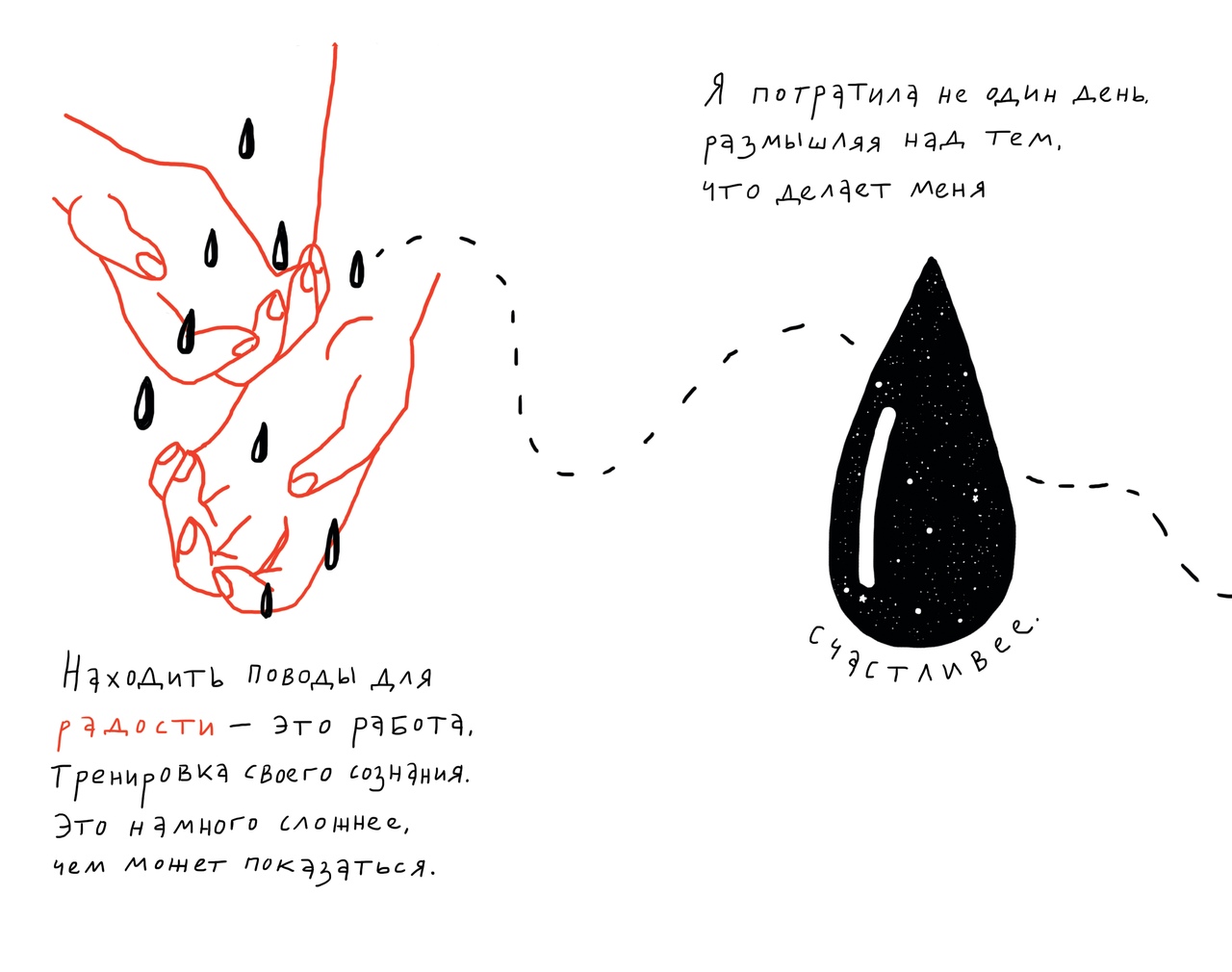 «Маленькая Гора» не случайно стала названием и даже символом книги — в тексте София не раз и не два будет возвращаться к этому образу. Но и сама книга в каком-то смысле стала маленькой горой: в как будто небольшую по размерам (133х210) книгу вложено огромное количество труда, она целиком нарисована от руки — нам, издателям, даже приходилось удерживать Софию от того, чтобы перерисовать в своем стиле штрих-код на задней обложке.