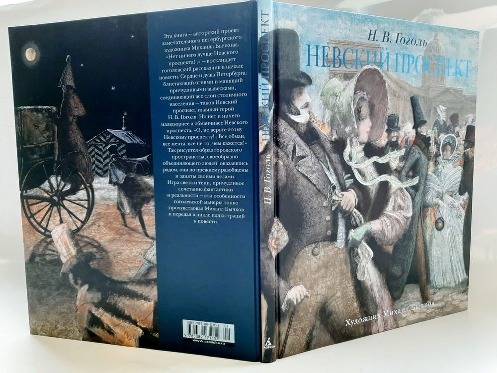 Новая страница в "петербургском проекте" художника Михаила Бычкова. В этом году вышли две книги отечественных классиков в серии "Больше чем книга", объединённых двумя общими признаками — для обеих книг иллюстрации рисовал Бычков, и оба издания воспевают Петербург. В начале года была представлена книга "Медный всадник"Пушкина, завершает год Николай Гоголь и его "Невский проспект".