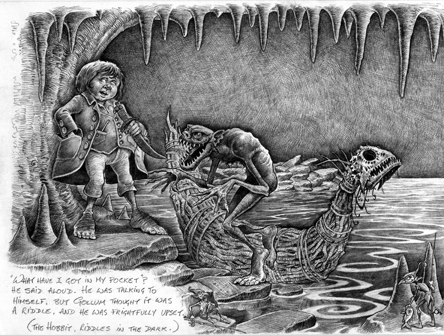 "В песне о Лютиен рассказывается, что Берен приковылял в Дориат поседевший и сгорбленный — так велики были его страдания в пути, но скитаясь летом в лесах Нелдорета, перед восходом луны он видел Лютиен, дочь Тингола и Мелиан, когда она танцевала на траве полян возле Эсгалдуина, и тогда вся память о перенесенных страданиях покинула Берена, очарование овладело им, ибо Лютиен была самой прекрасной из всех детей Илюватара. Она носила голубую одежду, и серые ее глаза напоминали вечер при свете звезд. Мантия ее была заткана золотом, волосы — темные, на лице ее сиял свет". (пер. З.И.Бобырь).