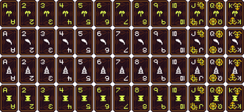 Asset pack contains a standard set of cards: 52 cards (Ace, 2-10 and court cards) and three jokers. Pack also includes 10 backsides to the cards. Cards are 23x35 pixels.