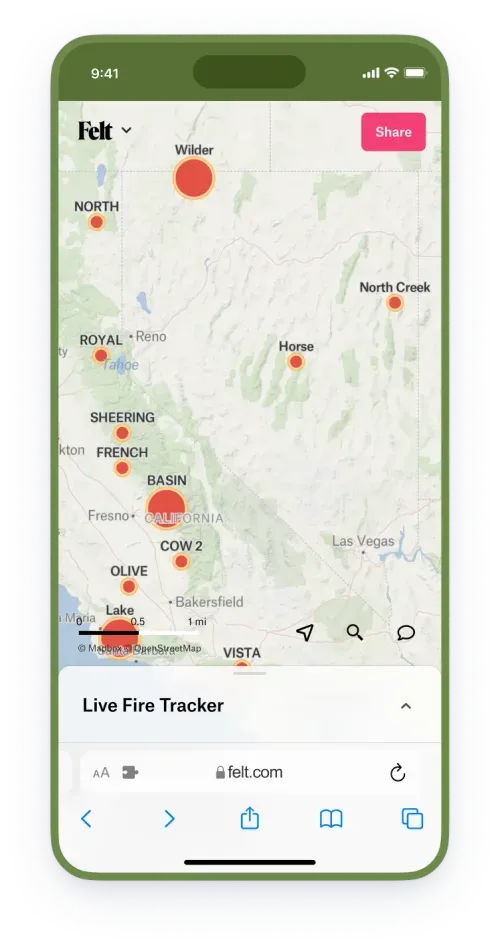 Powerful transformations let you highlight spatial patterns and relationships in your data. Let Felt handle tedious styling with strong cartographic defaults that transform your data into detailed visualizations.