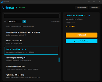 - Manual Scan — Search for leftovers from programs already uninstalled (ghost hunting mode)