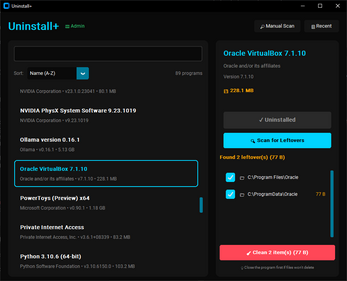 - Leftover Scanner — Finds junk in AppData, ProgramData, Program Files, and Registry