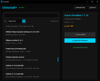 - Broken Uninstaller Detection — Greys out missing uninstallers, guides you to scan instead