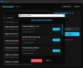 - Recent History — Track what you've uninstalled with re-scan capability