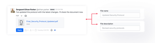 Partagez instantanément des fichiers depuis n'importe quel appareil ou cloud pour garder les conversations contextuelles, claires et informées.